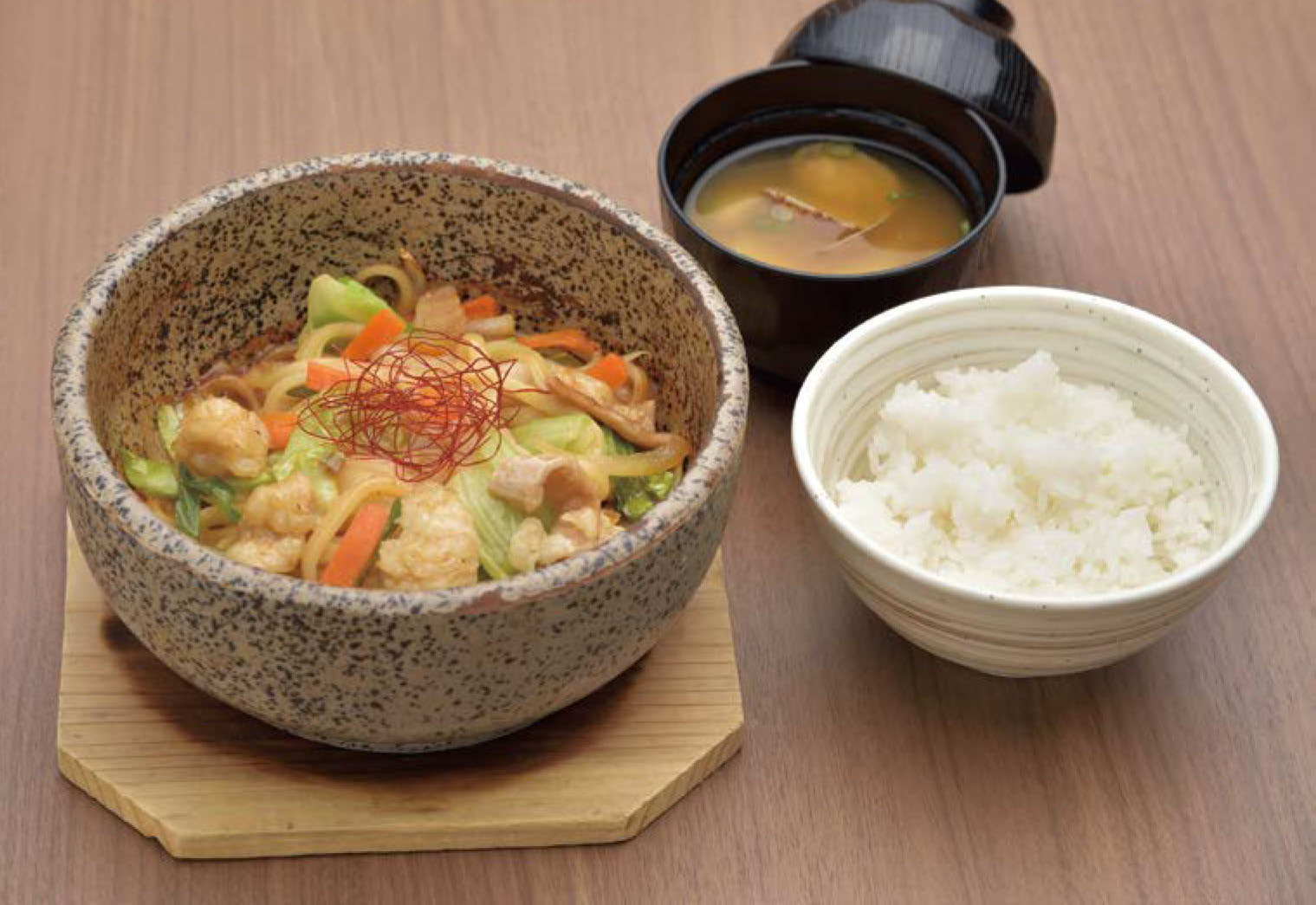 豚肉・海老・貝柱・烏賊・色とりどりの野菜を炒めた 旨味たっぷりのスープが太麺に良く絡む本格ちゃんぽんです。