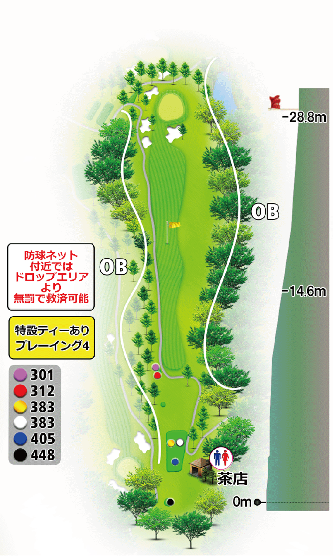 トイレ・茶店、防球ネット付近ではドロップエリアより無罰で救済可能