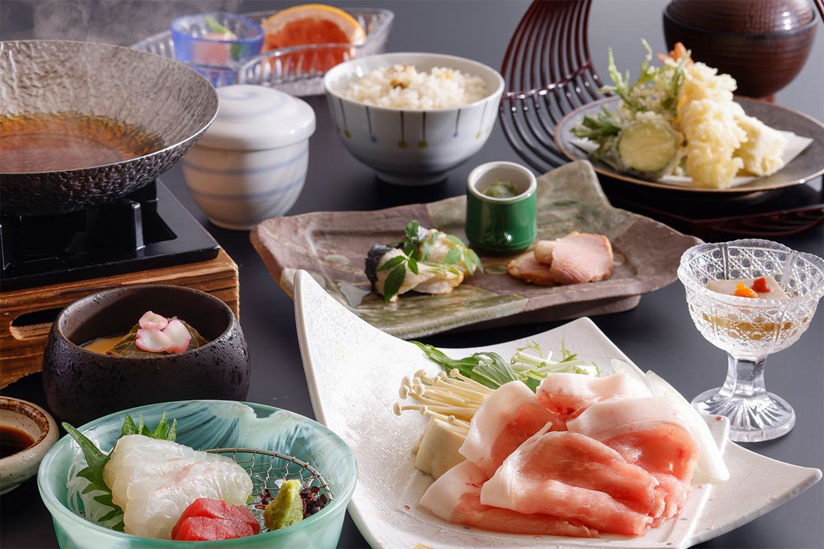 春の代名詞「桜鯛」や「鰆の木の芽焼き」など、旬の香りをふんだんに取り入れました。岡山県産ピーチポークは、素材の良さが際立つしゃぶしゃぶで。爽やかな春の息吹を感じる御膳です。